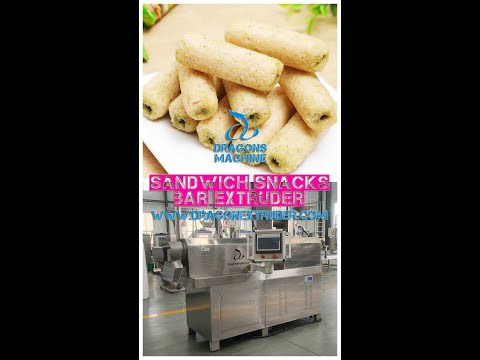 - The Sandwich Snacks Bar Extruder process starts from the raw material mixer, we provide a fully automatic raw material mixing system and the process of conveying to the extruder for cooking and extrusion, in the twin-screw food extruder the shape is according to the customer's market demand and extrusion in the snack food industry.